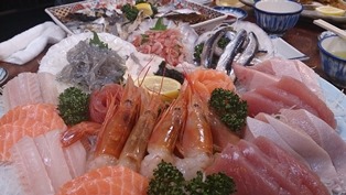 この写真にある刺身の盛り合わせを頂いただけでもお腹がいっぱいになってしまう。