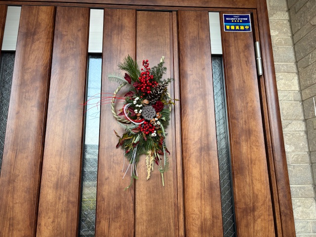 今年も玄関は家人がこしらえたしめ縄。
