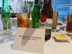 乾杯も受付で配られたビールで行います。