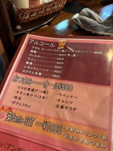 なんとアルコールもおつまみもあり、安danteSETというセットまであります。