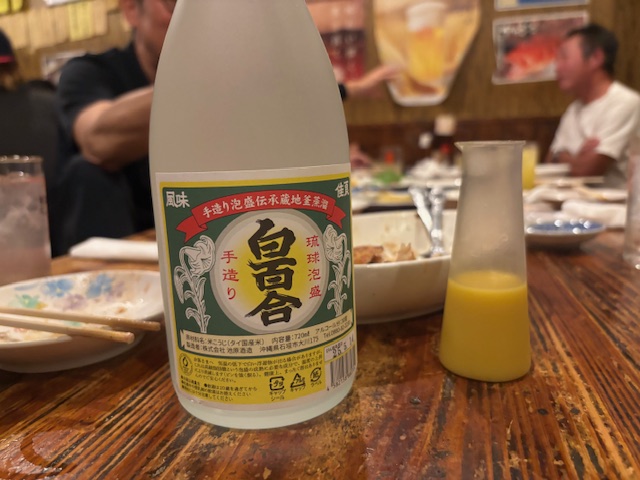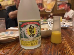 一升瓶をお願いし、水割りにシークワーサーを入れて頂く。