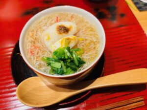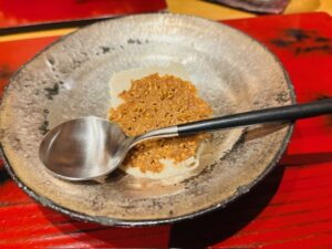 煮物 河豚白子の塩焼きとずわい蟹の餡かけ茶碗蒸し
