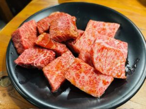 徒歩2~3分の焼肉屋さんでもいいのですが、美味しく頂きたい時は車で5分程度走ります。