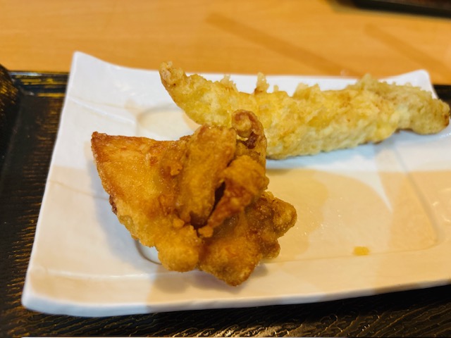 家人はとり唐揚げうどんを注文したので、一つ交換しました。