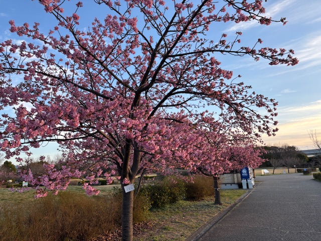戸田川緑地公園はすでに河津桜が咲いていた。