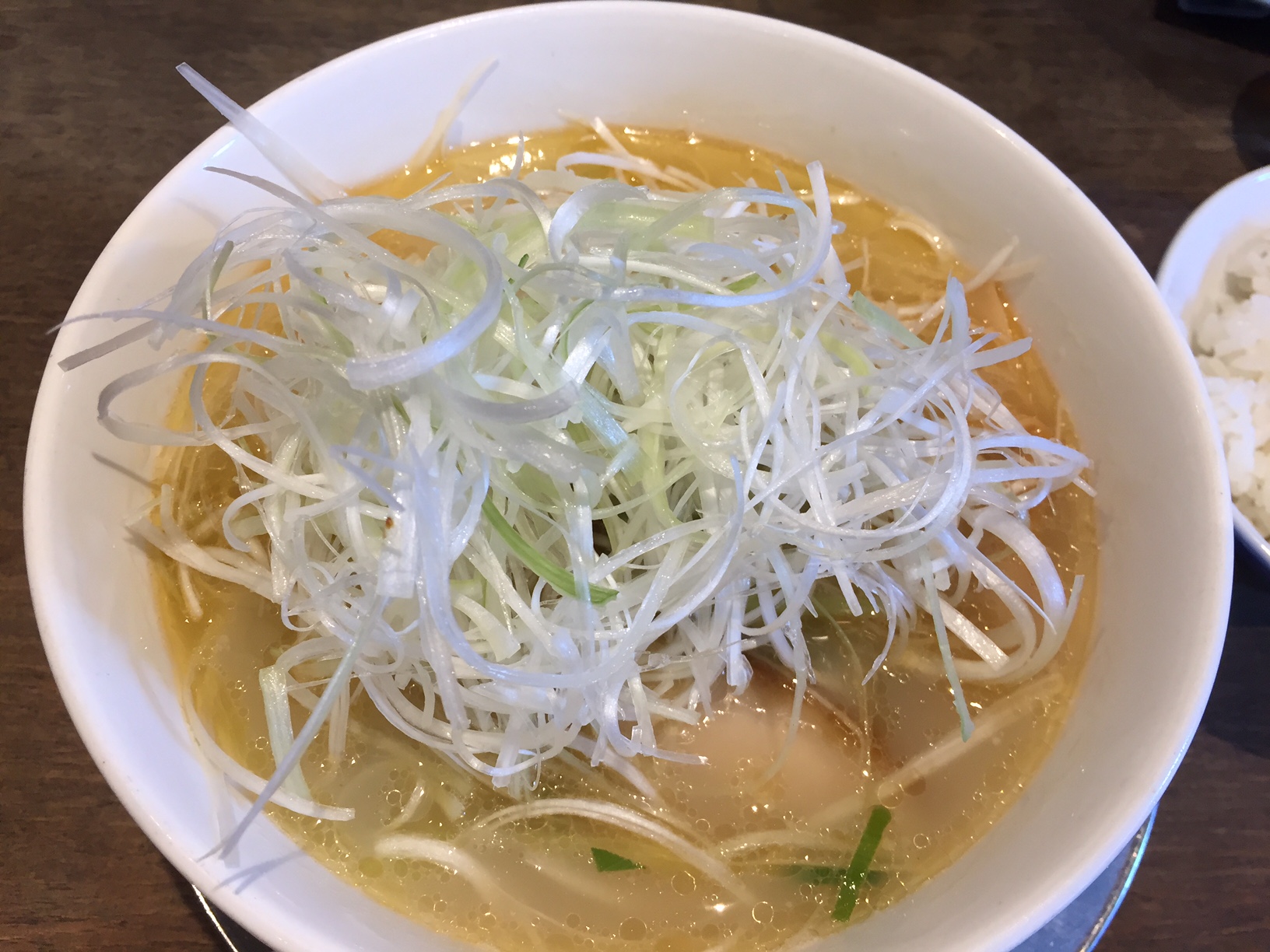 「すいません、塩ラーメンの葱で、あとご飯は少なめでお願いします。」